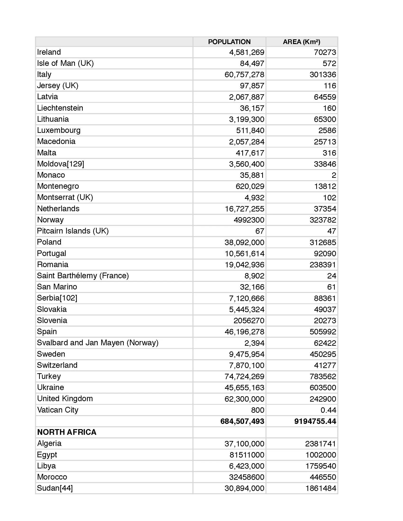 UN Population Database, updated annually